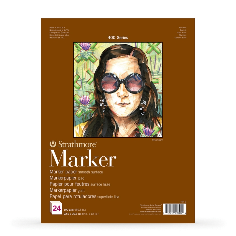 400 Series Marker paper was developed for fine artists who create finished art using markers. The smooth surface allows markers to glide and blend easily. Colors look vibrant and crisp. The acid free, heavyweight sheet is bleed and feather resistant so artists can apply multiple layers of color. Proudly made in the USA.