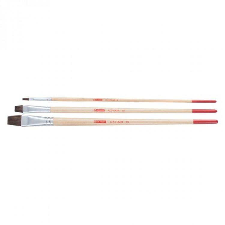 This brush set of ox hair is suitable for oil colour, acrylic colour and gouache and contains the following types and sizes: Flat brushes in sizes 4, 8 and 16