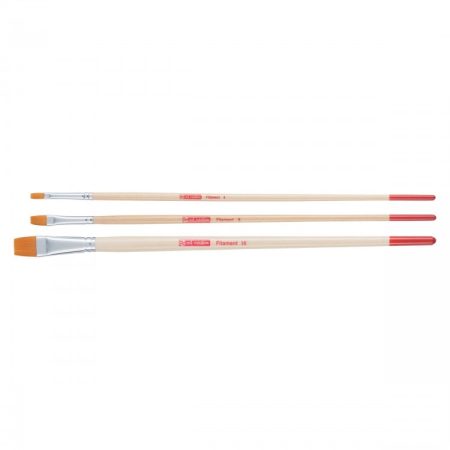 This brush set of polyester is suitable for oil colour, acrylic colour and gouache and contains the following types and sizes: Flat brushes in sizes 4, 8 and 16