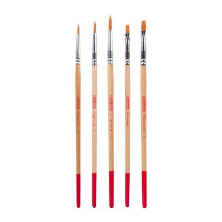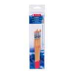 These 5 polyester brushes can absorb a lot of water, which makes it suitable for highly thinned paints such as water colours and inks. The set contains the following types and sizes: 3 round brushes in sizes 2, 4 and 6, 2 flat brushes in sizes 4 and 6.