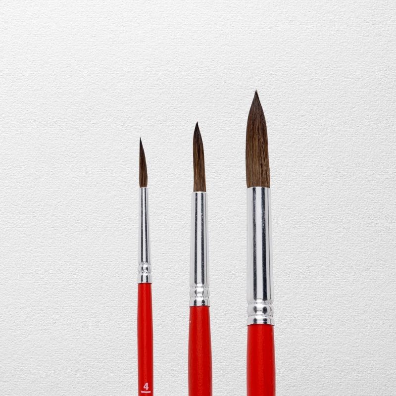 The 150 series, watercolor brushes have specially selected fibers from natural horse and goat hair of various lengths. The brushes, thanks to the bristles arranged in the tip, are an extremely precise tools, and thanks to shorter fibers have better paint transfer ability. The product is intended for watercolors and gouaches.