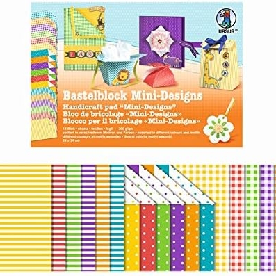 URSUS® Mini design craft book, 300g/m² 24x34cm, 18sheets in different colors and patterns.