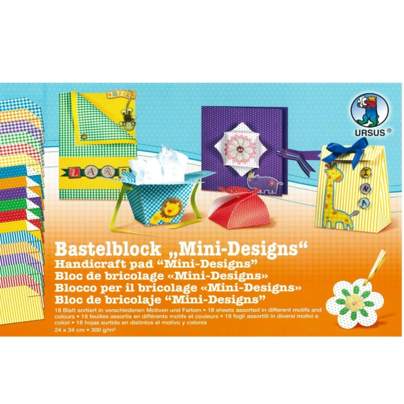 URSUS® Mini design craft book, 300g/m² 24x34cm, 18sheets in different colors and patterns.