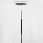 This hair bundle of this brush is round and pointed. The larger sizes are brilliant for laying on colours while the smaller sizes are perfect for finer detail. This brush has a hair bundle width of 2.0mm