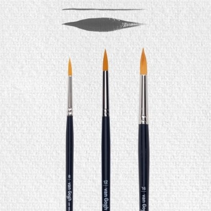 Crafted with care and shaped by hand, this oil and acrylic brush has a flexible hair bundle resistant to wear. The flexibility of the golden synthetic hair bundle makes this brush especially great for acrylic painting, since acrylic colours are normally used in a more liquified consistency. This hair bundle of these brushes is round and pointed. The larger sizes are brilliant for laying on colours while the smaller sizes are perfect for finer detail. The hair bundle widths of the brushes included are 3.3mm, 4.9mm and 5.7mm