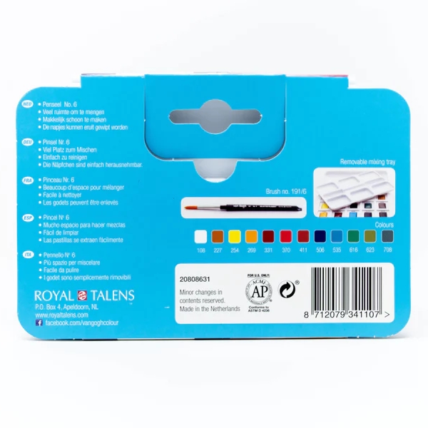 Van Gogh Watercolour Pocket Box Basic Colours with 12 Colours in Half Pans