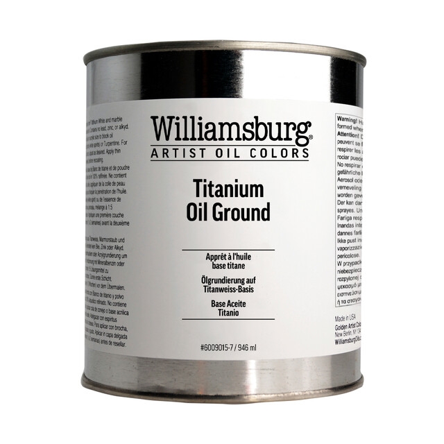 Containing no zinc or alkyd, Williamsburg Titanium Oil Ground is made with titanium dioxide and marble dust ground in 100% alkali-refined linseed oil. It offers just the right amount of tooth and absorbency.